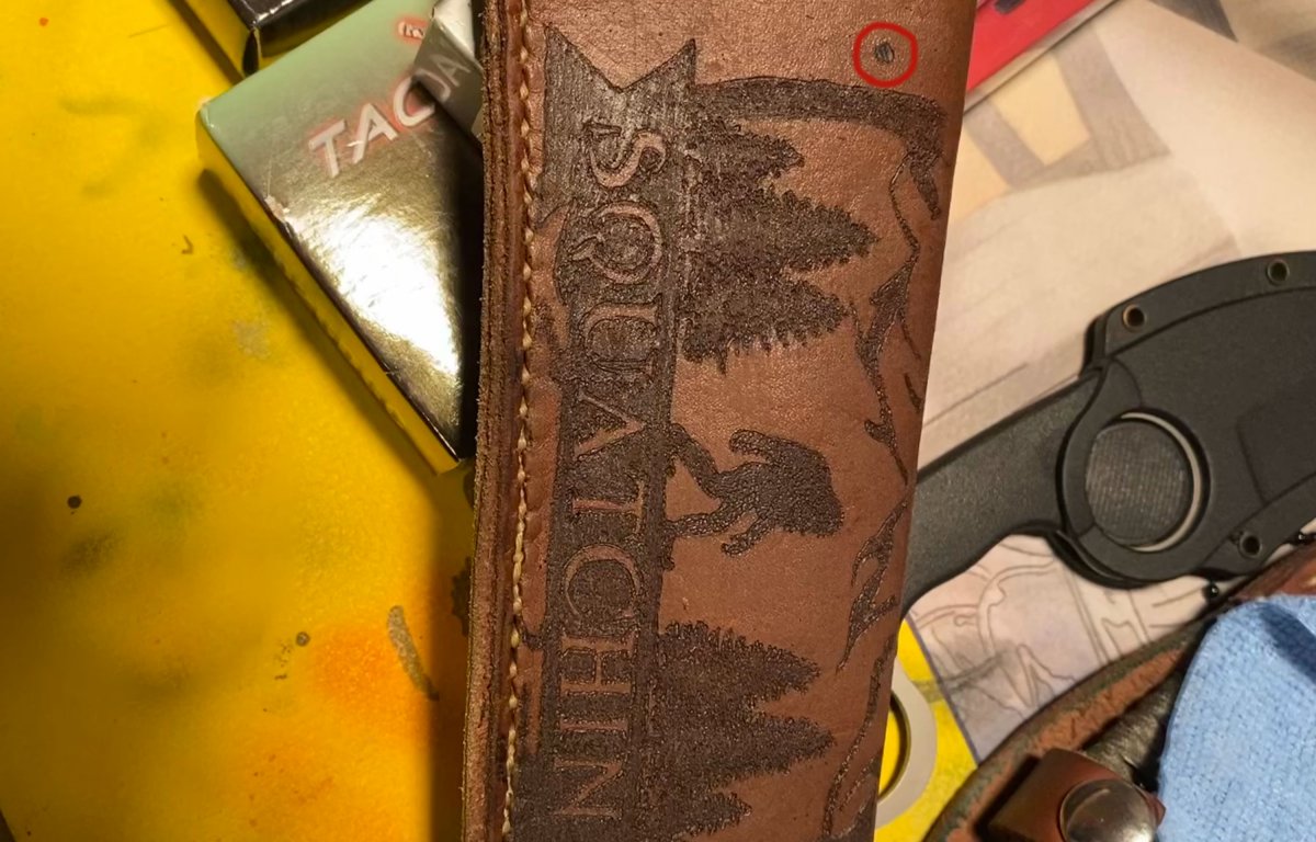 I want to begin by saying the leather I am using for this sheath build is marginal at best. It’s some of the cheapest I could get at Tandy Leather the last time we had gone to Tulsa and I’m not really happy with the thinness of it. So, as you can see in the initial pics, there are some water splotches and stains that cleaned up fairly well in the finished project.