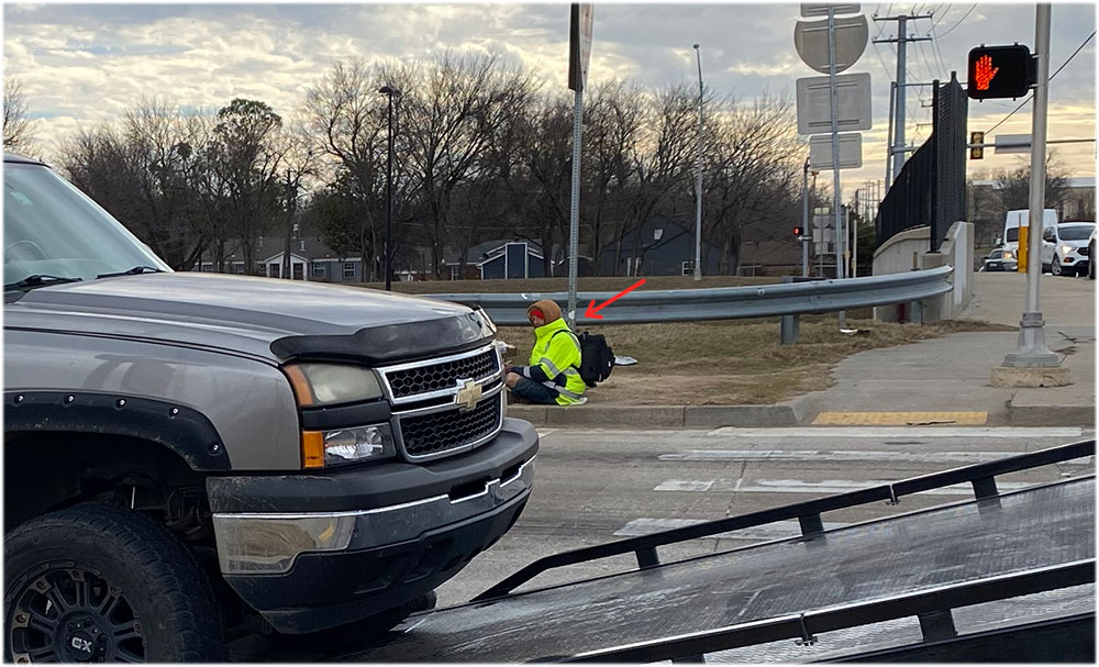 While waiting for them to get there, we had called a relative from Pryor to come and pick us up because we couldn’t really ride in the tow truck because of liability (and space) issues. So, for about another half hour we waited inside the Quick Trip by the entryway where it was warm and passed the time looking like the panhandlers waiting at the street corners - only without signs.