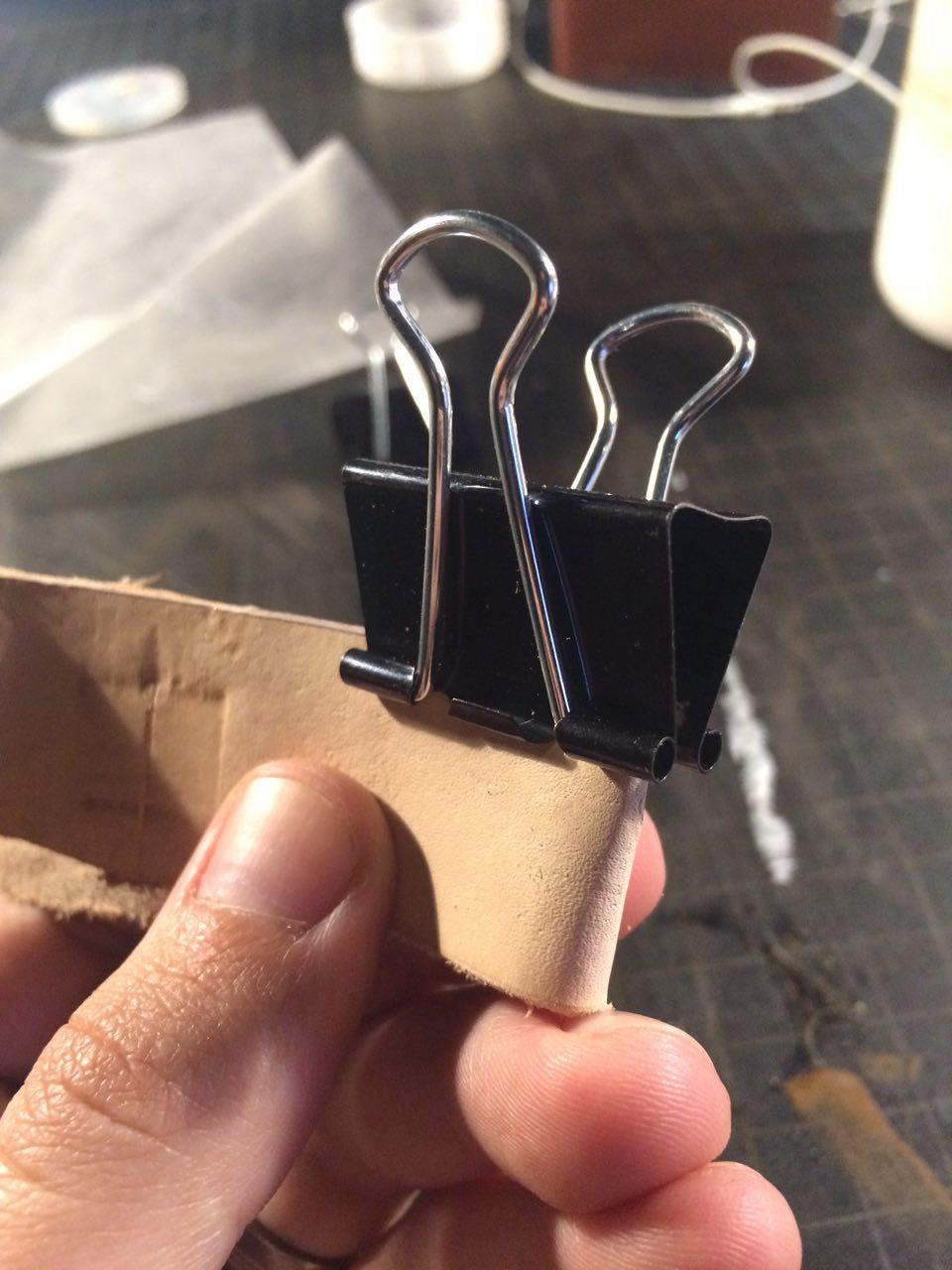 (Using small clamps to hold the leather in place also works very well at this stage). Let the glue set for at least three hours undisturbed as the bond forms.