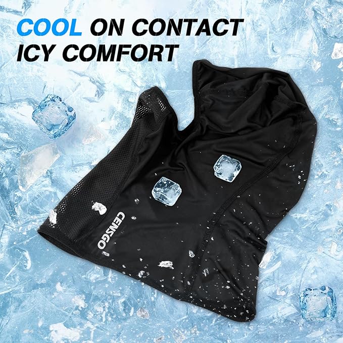 Cooling neck wraps and gaiters can also help because the neck is a sensitive area for heat relief. A cooled wrap around the neck can take the edge off a brutal ride quickly.